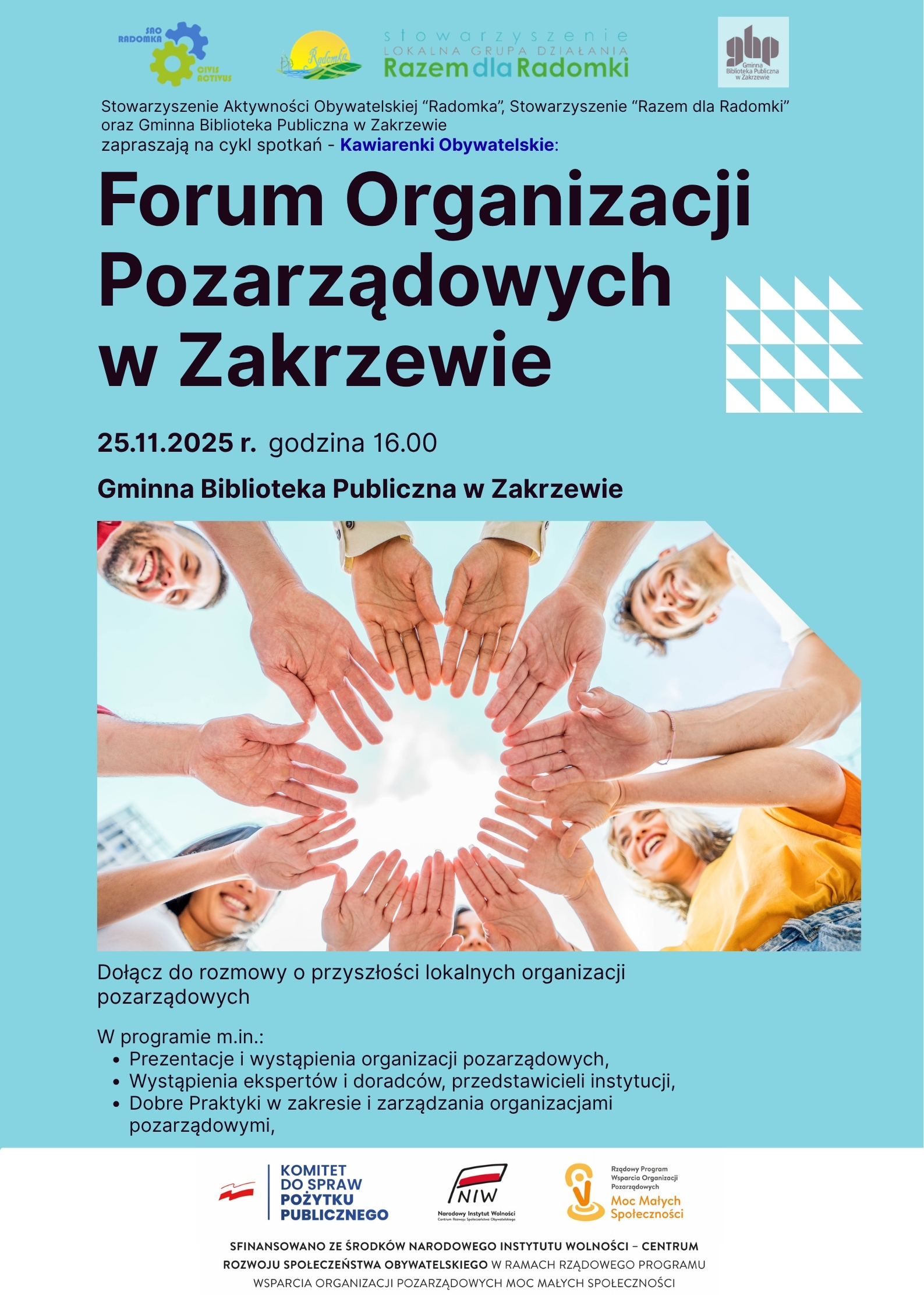 Zapraszamy wszystkich zainteresowanych do udziału i wspólnej rozmowy o przyszłości lokalnychorganizacji obywatelskich.