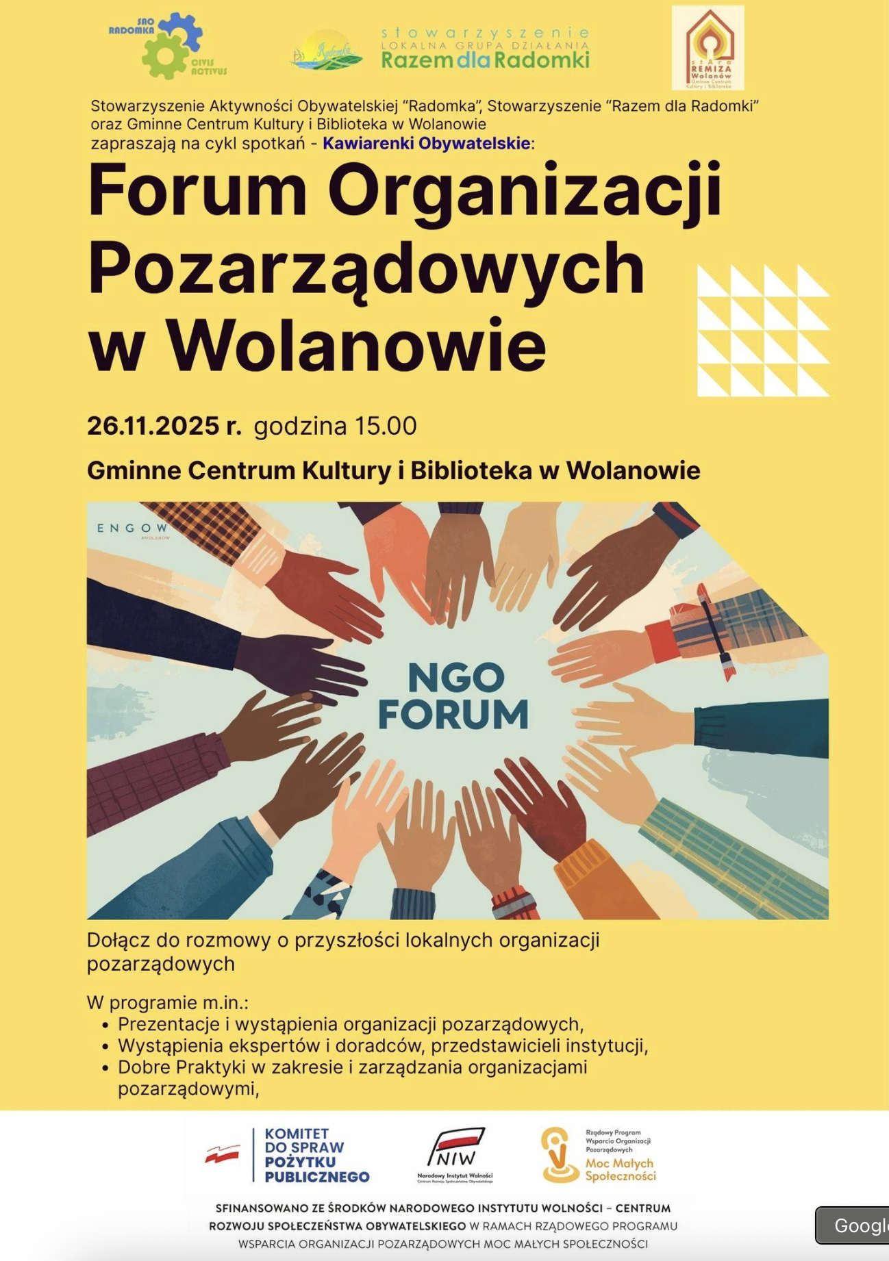 Wydarzenie finansowane jest ze środków Narodowego Instytutu Wolności – Centrum Rozwoju Społeczeństwa Obywatelskiego w ramach Rządowego Programu
